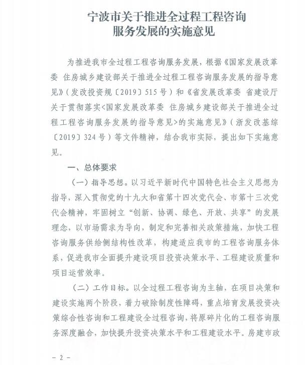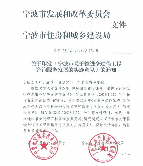 关于印发《宁波市关于推进全过程工程咨询服务发展的实施意见》的通知