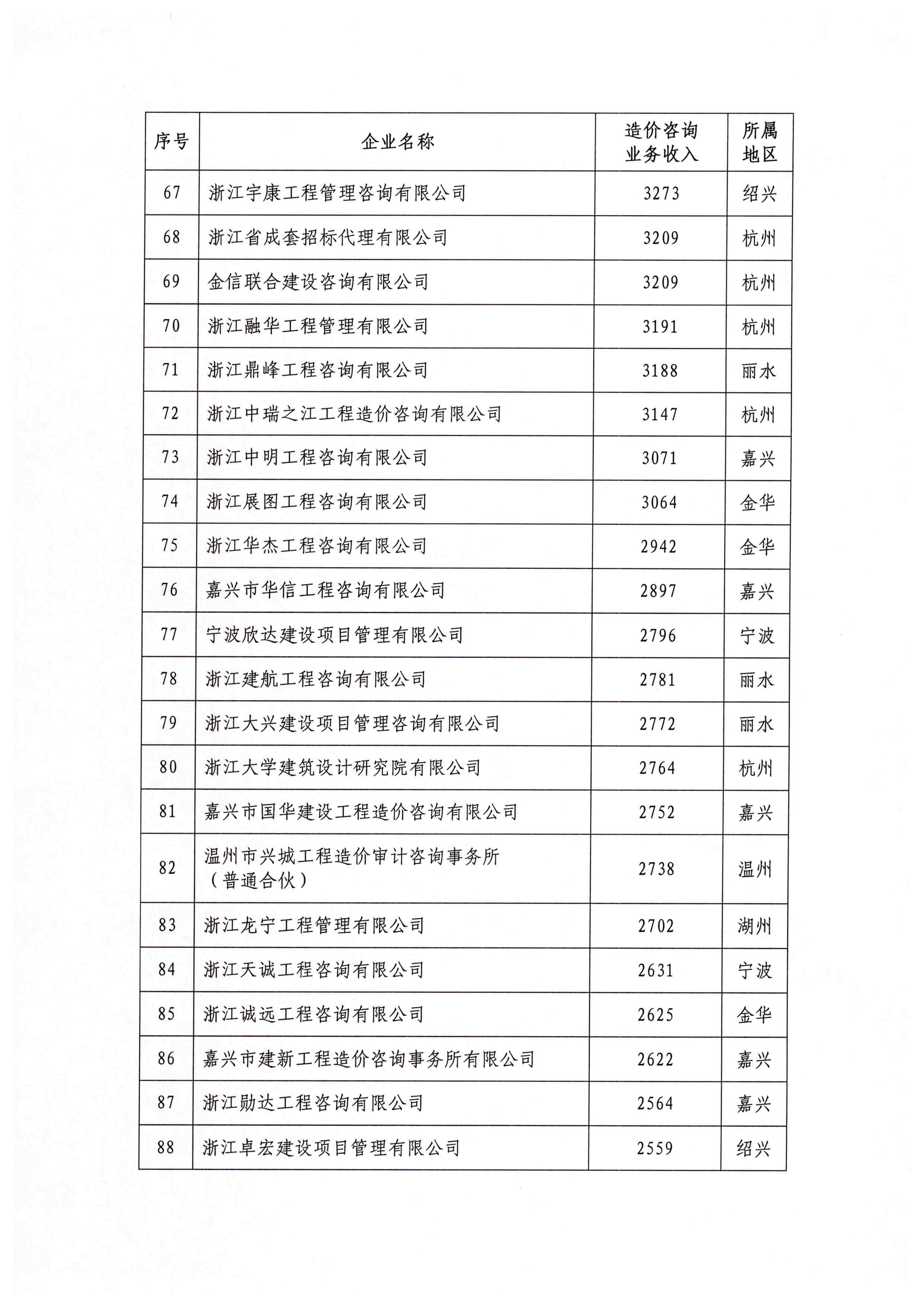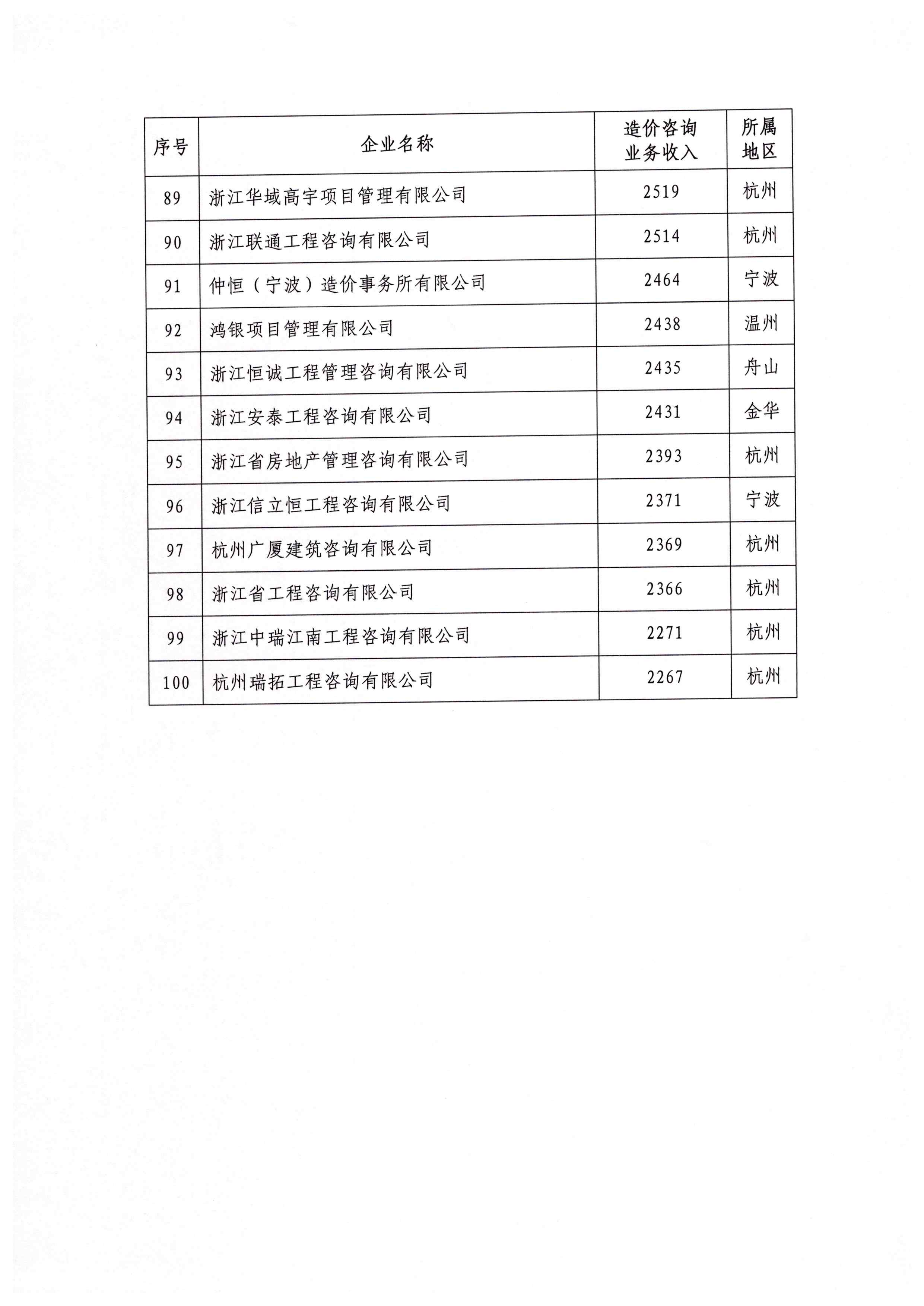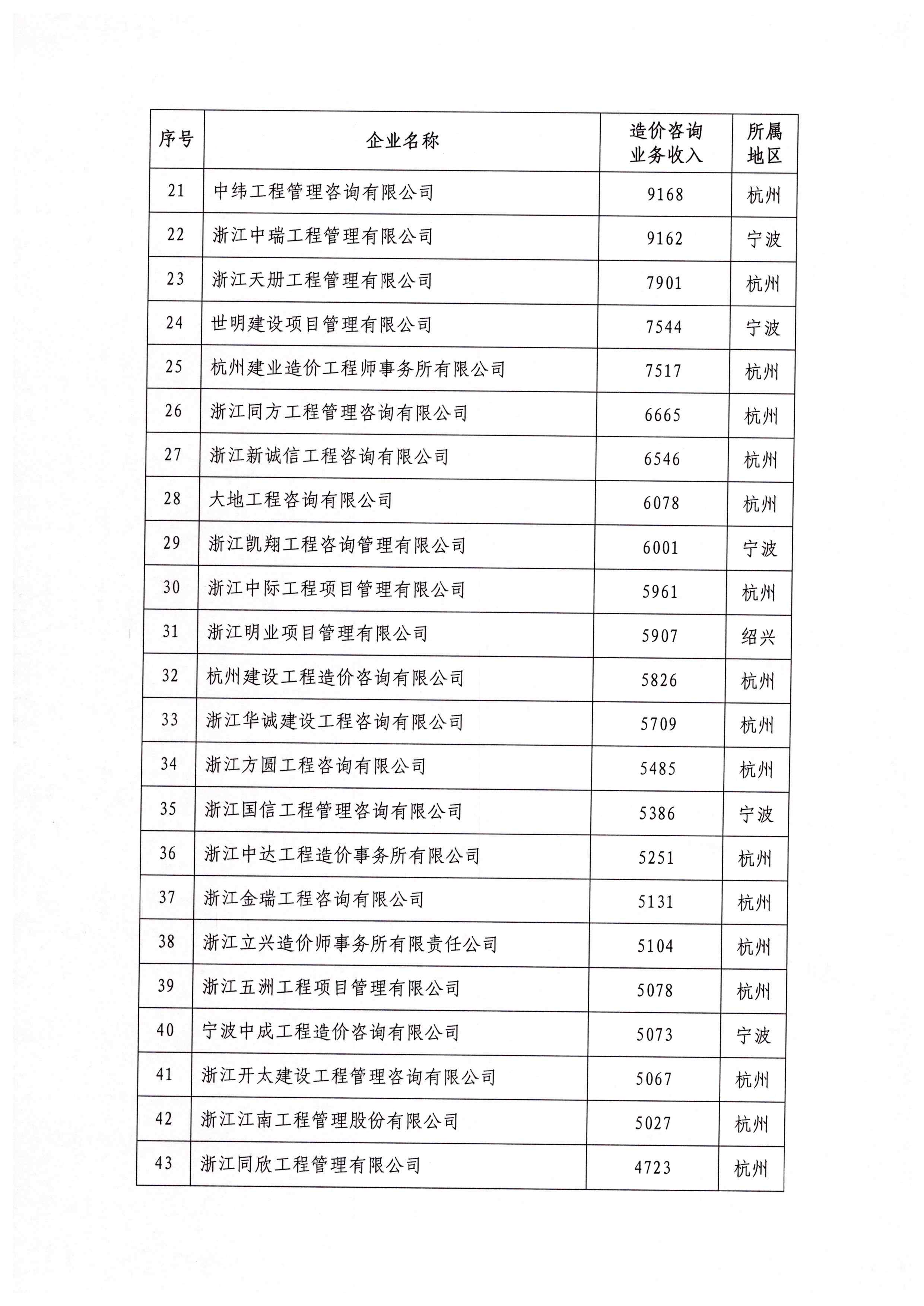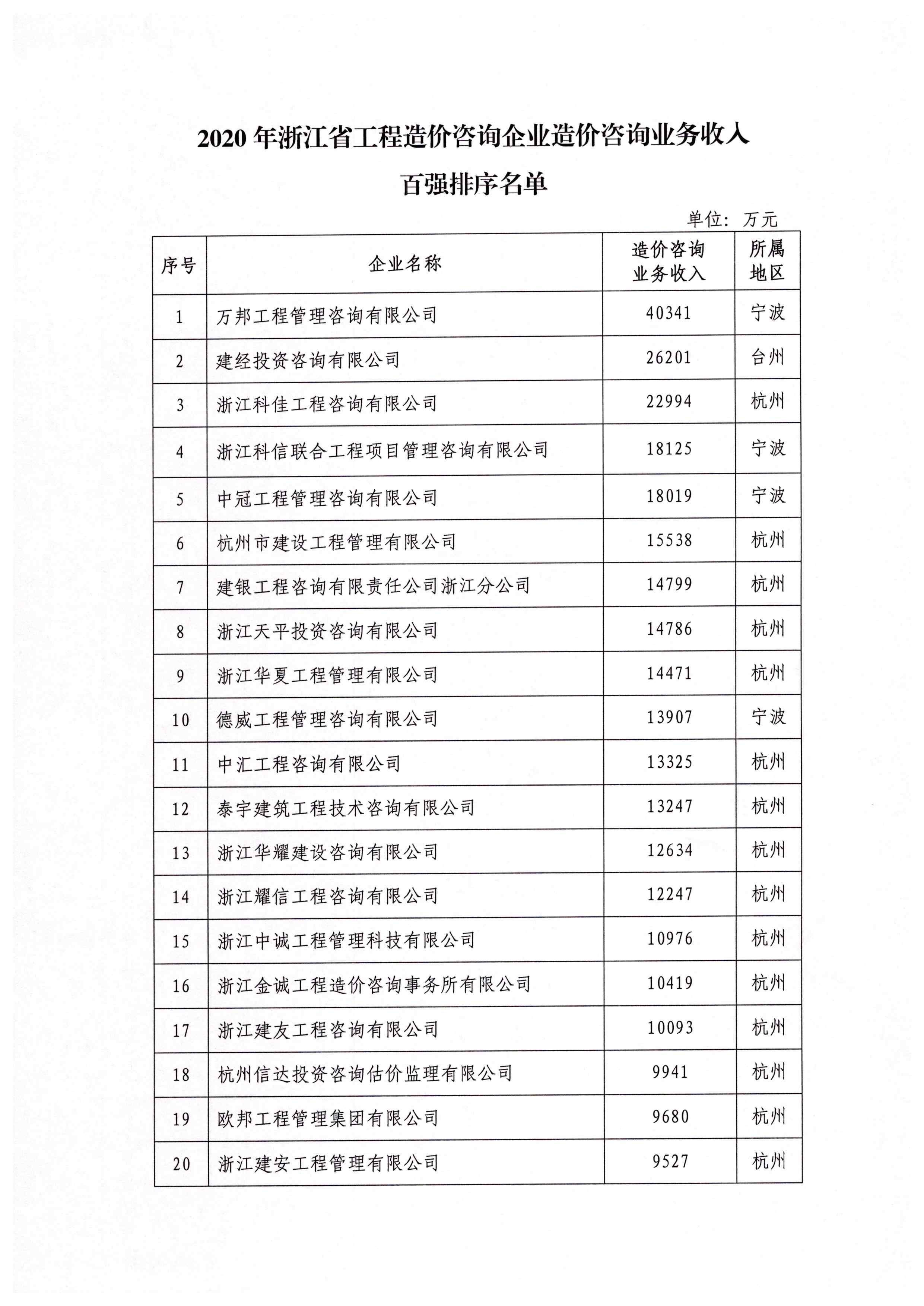 关于公布2020年浙江省工程造价咨询企业造价咨询业务收入百强排序的通知