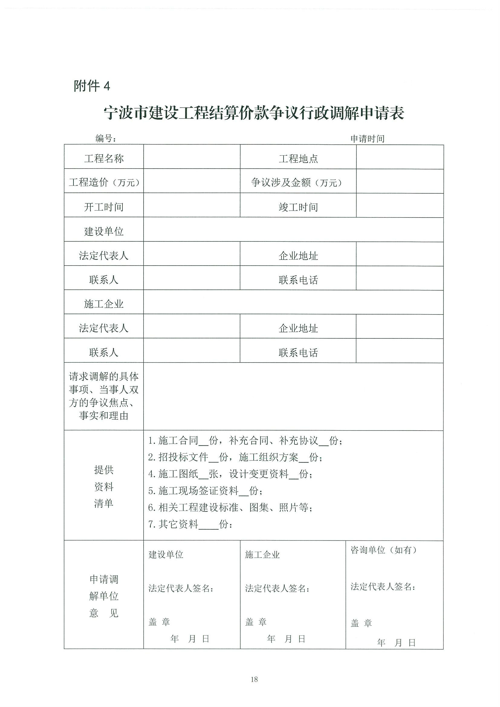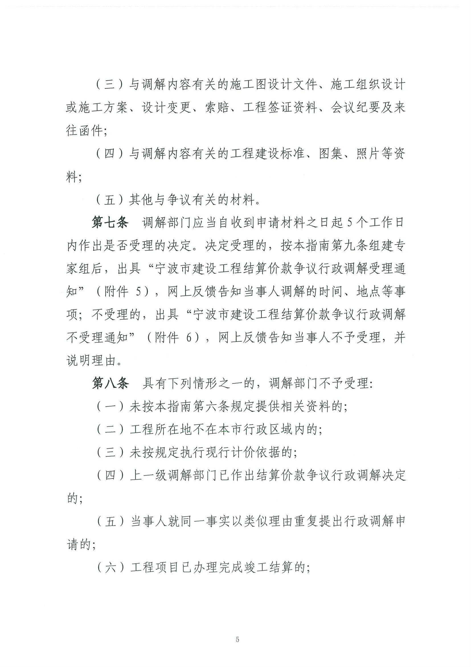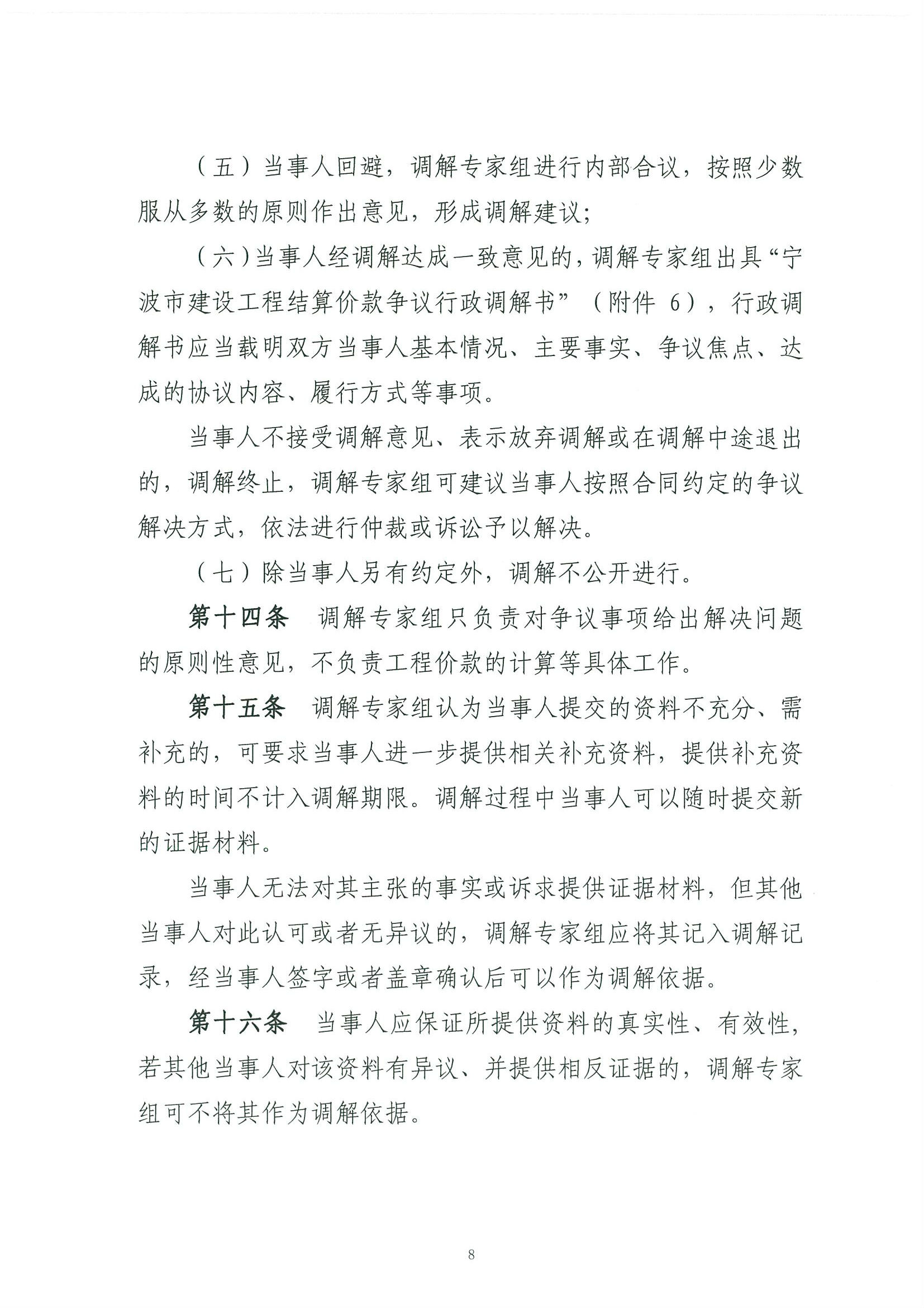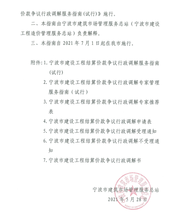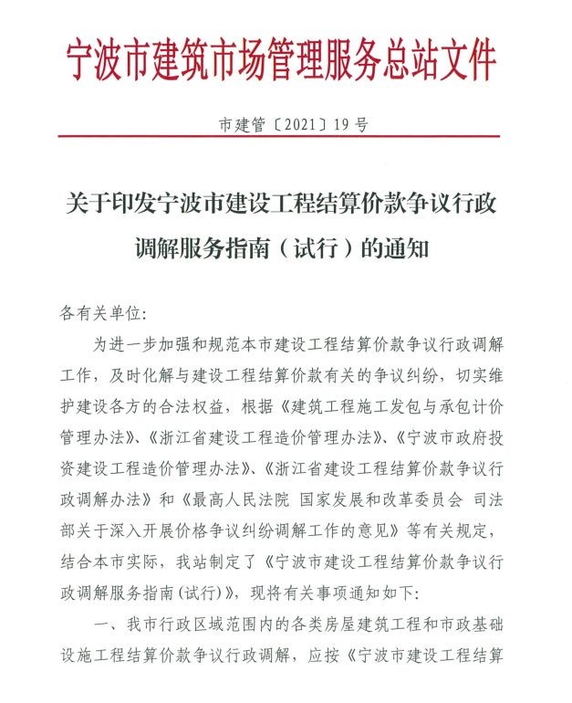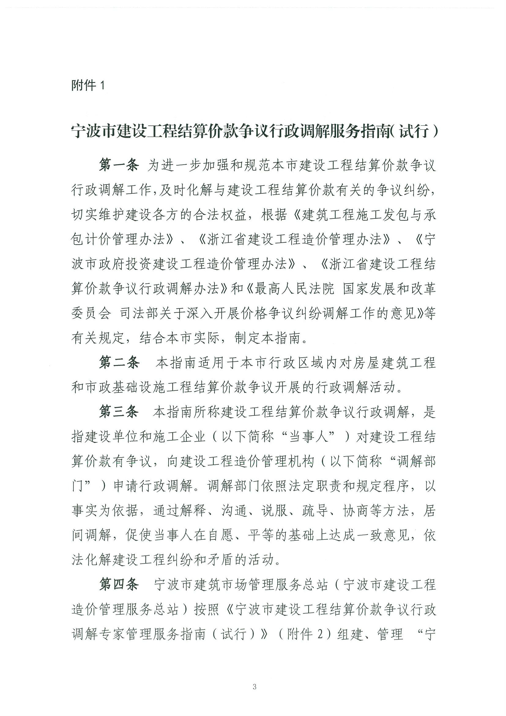 关于印发宁波市建设工程结算价款争议行政调解服务指南(试行)的通知