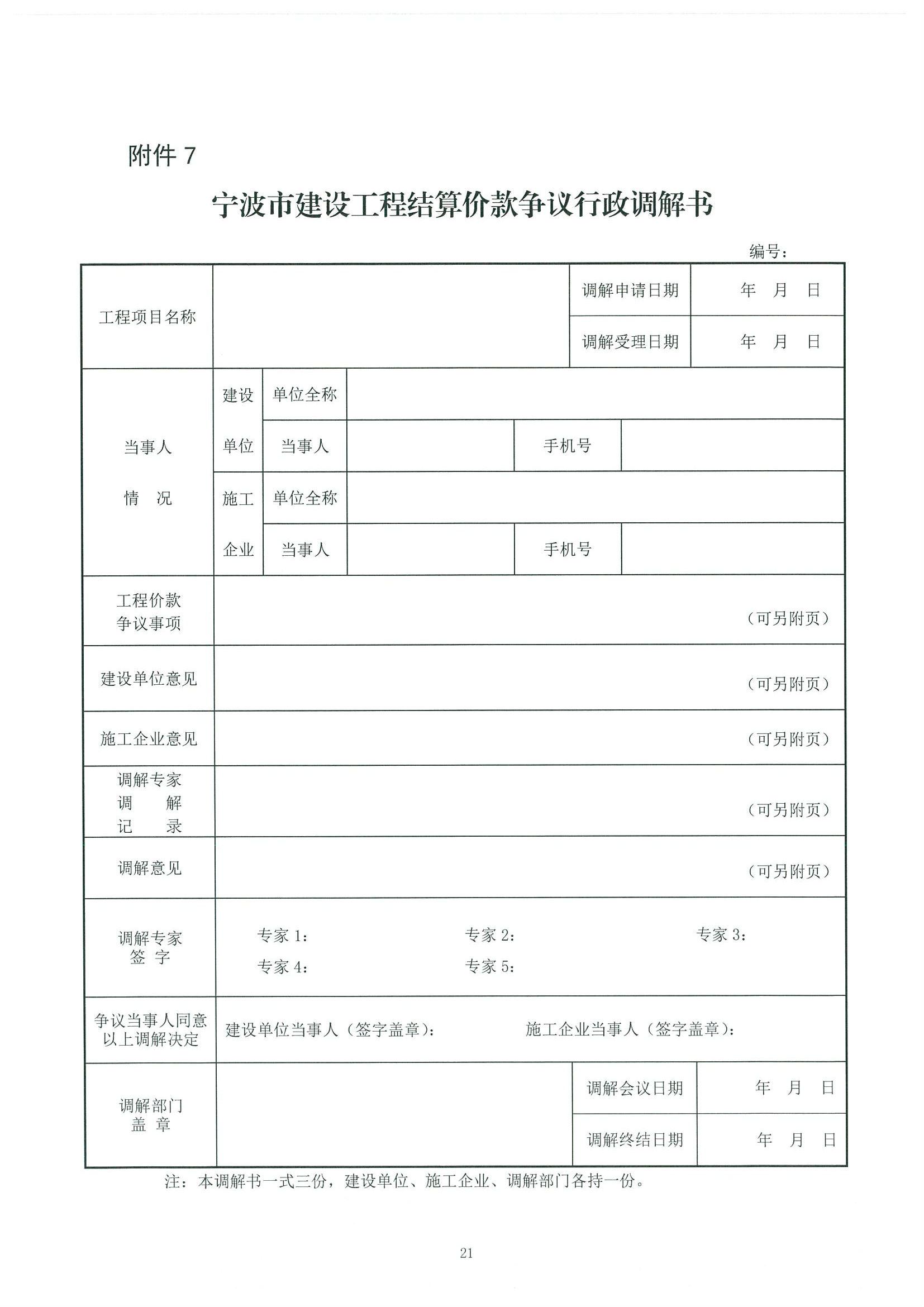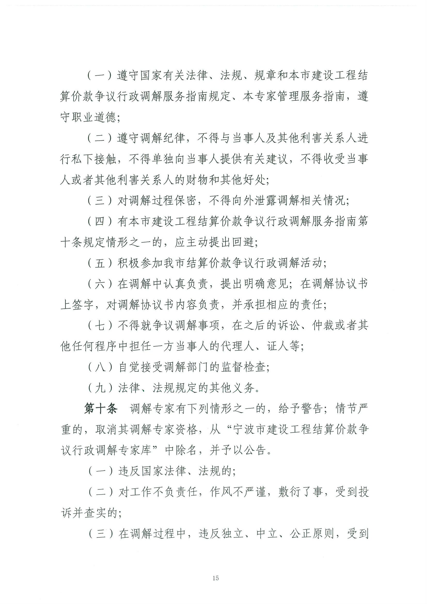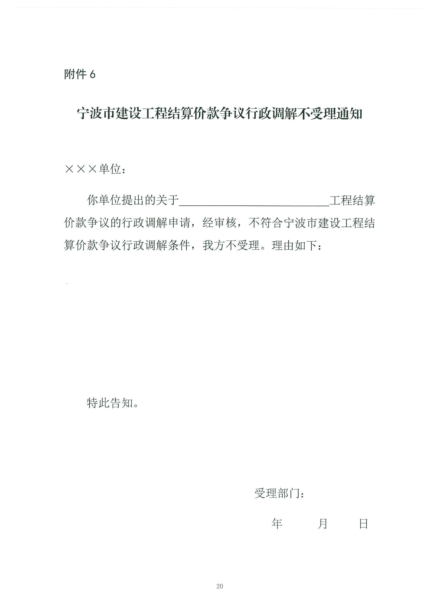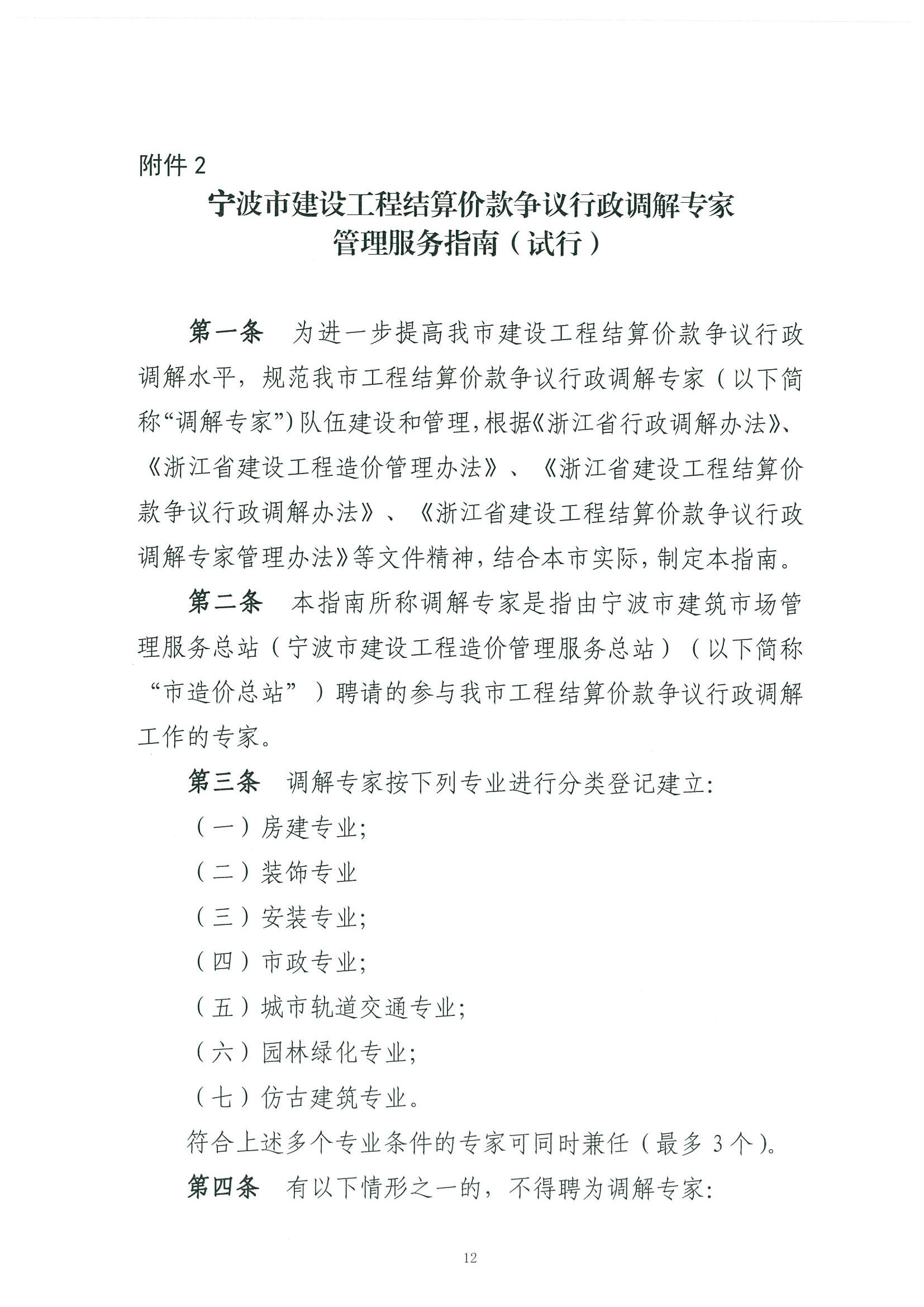 关于印发宁波市建设工程结算价款争议行政调解服务指南(试行)的通知