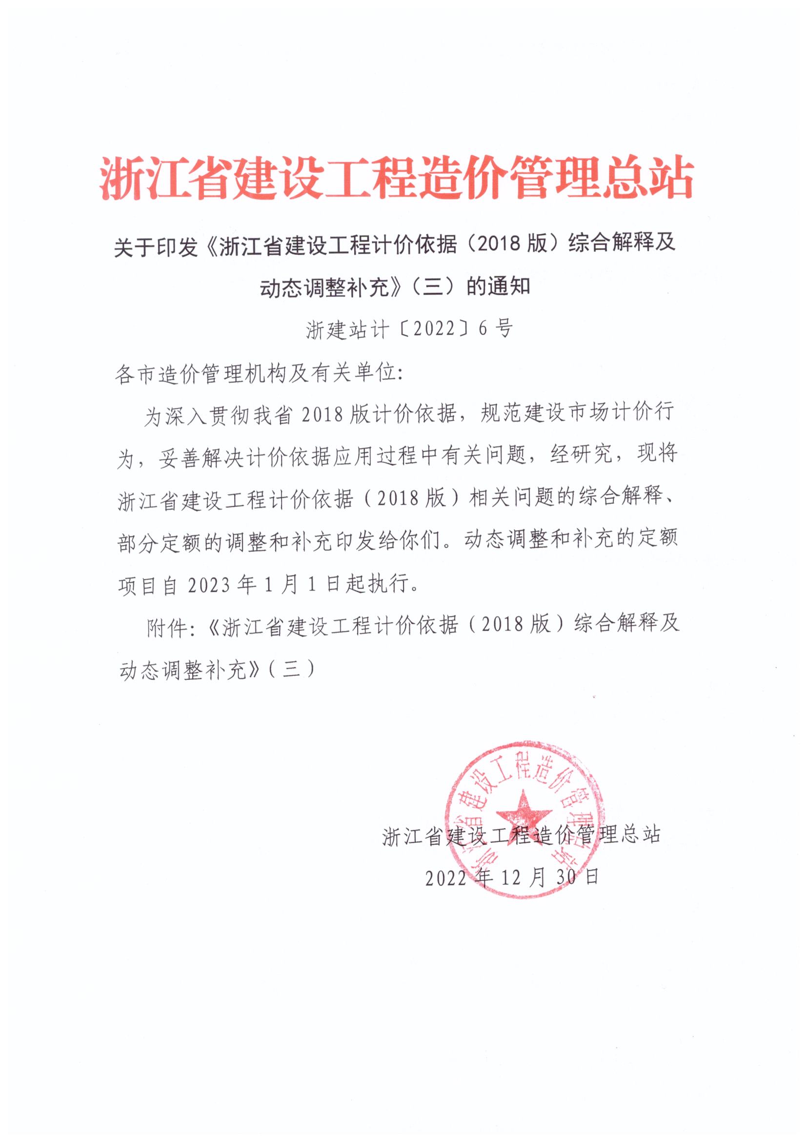 浙建站计[2022]6号关于印发《浙江省建设工程计价依据(2018版)动态调整补充》(三)的通知