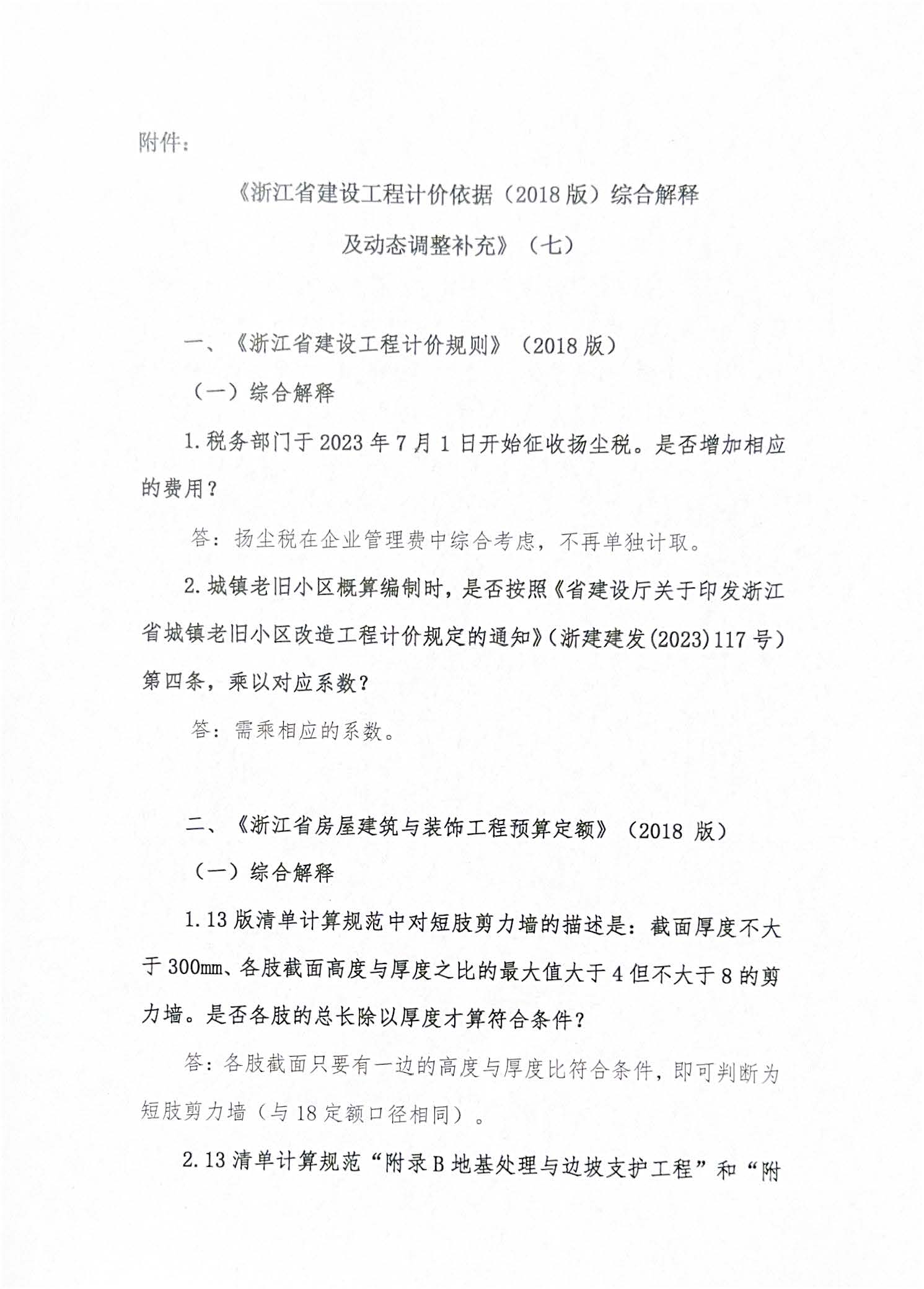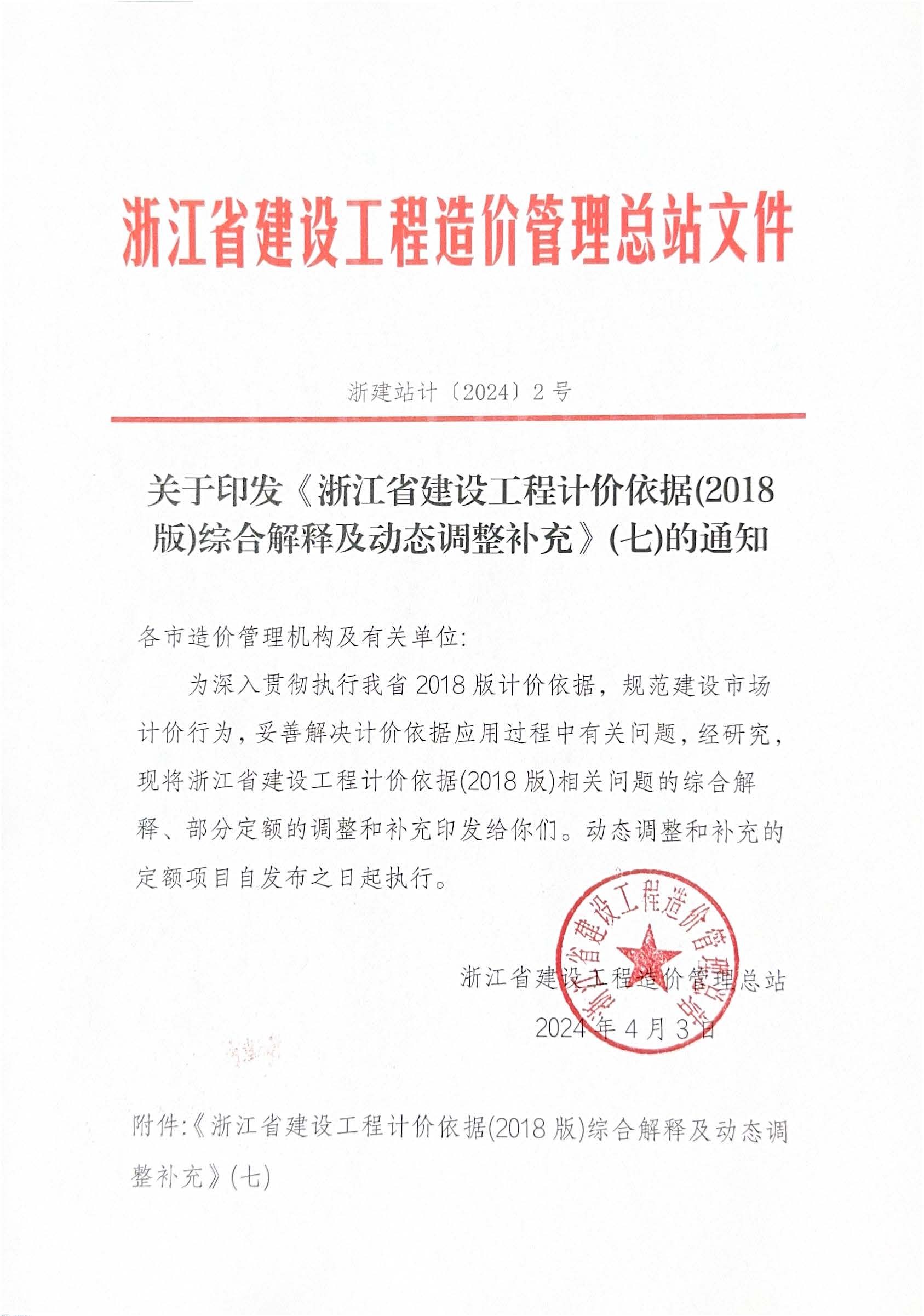 浙建站计[2024]2号关于印发《浙江省建设工程计价依据(2018版)综合解释及动态调整补充》(七)的通知